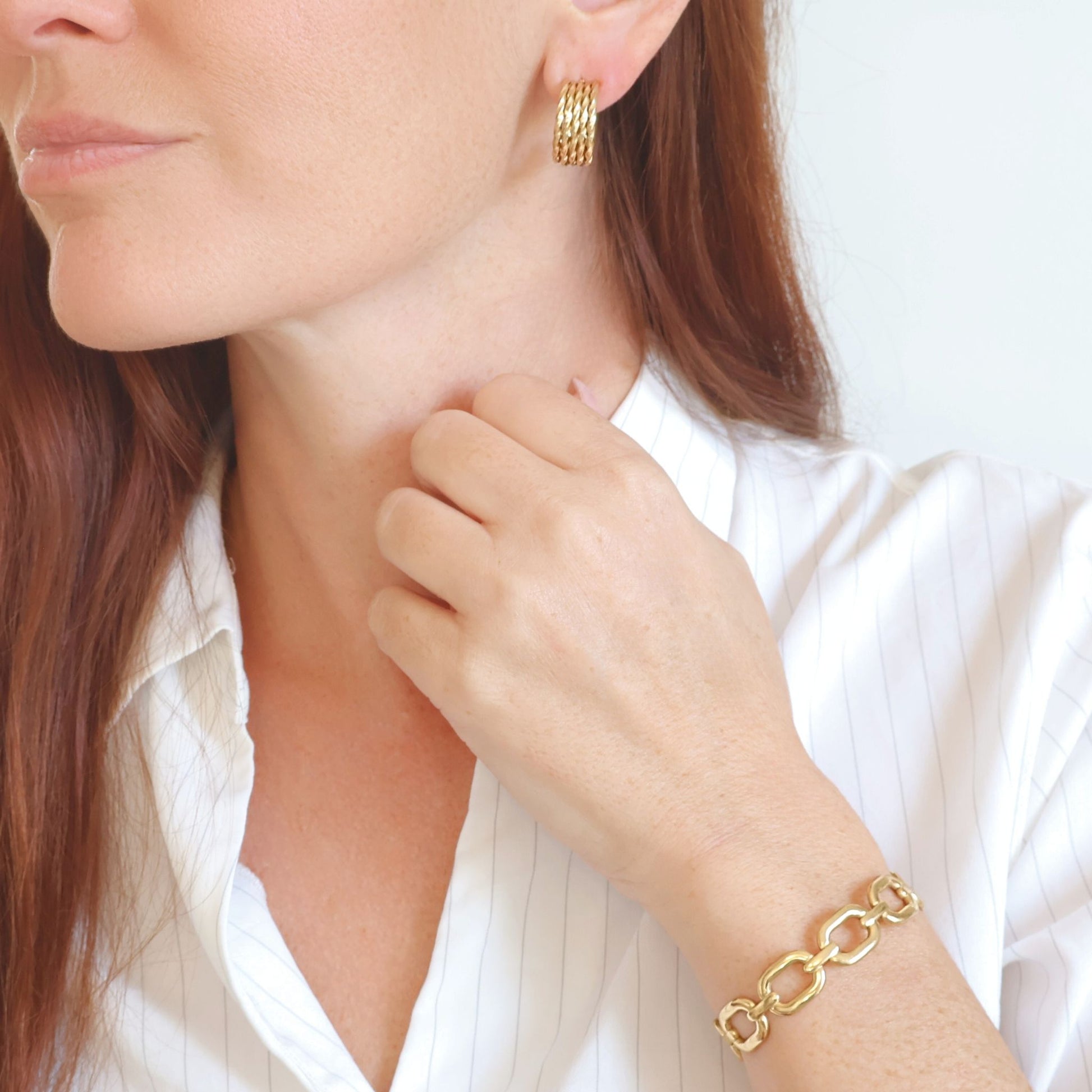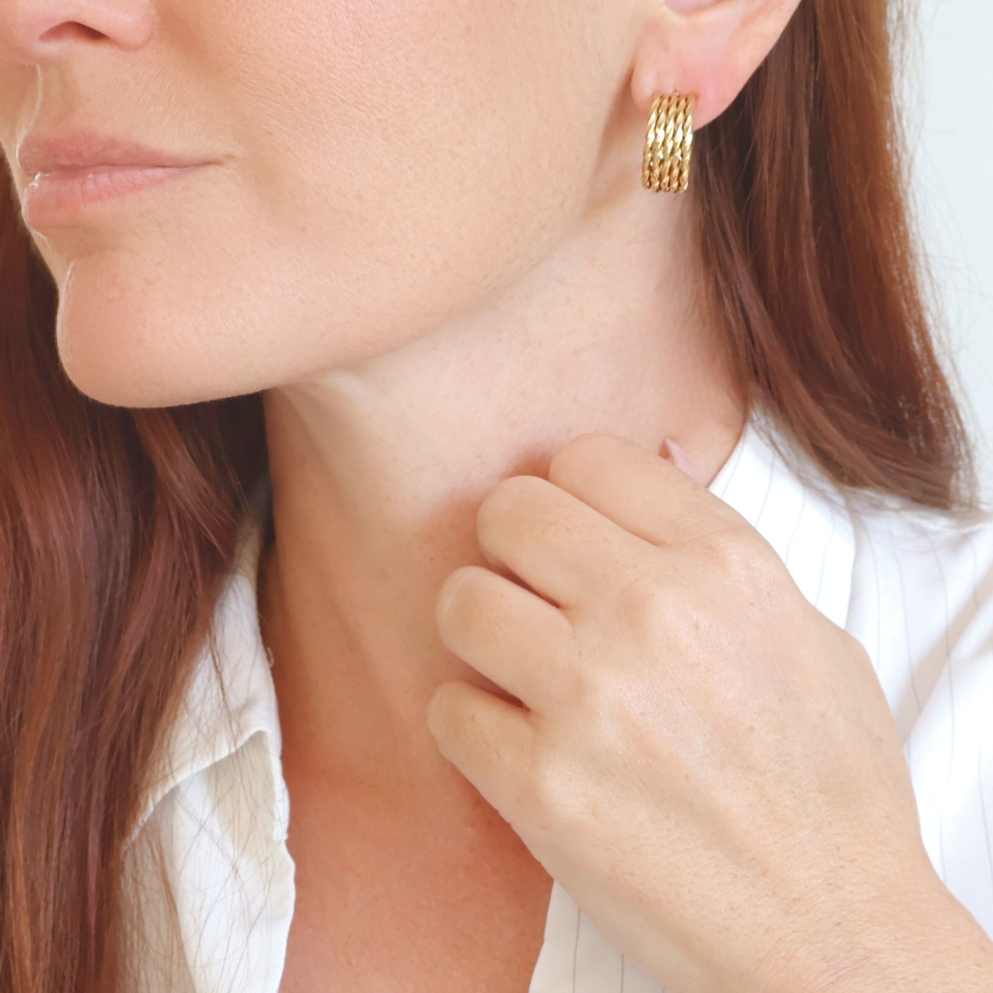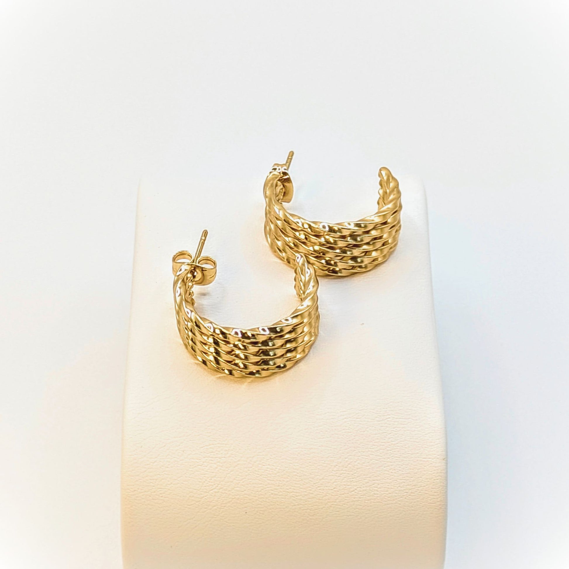 Les boucles d’oreilles Sienna séduisent par leur forme demi-anneau large et leur finition dorée éclatante. Un bijou statement qui capte la lumière et ajoute une touche d’audace à vos looks, du plus casual au plus sophistiqué.