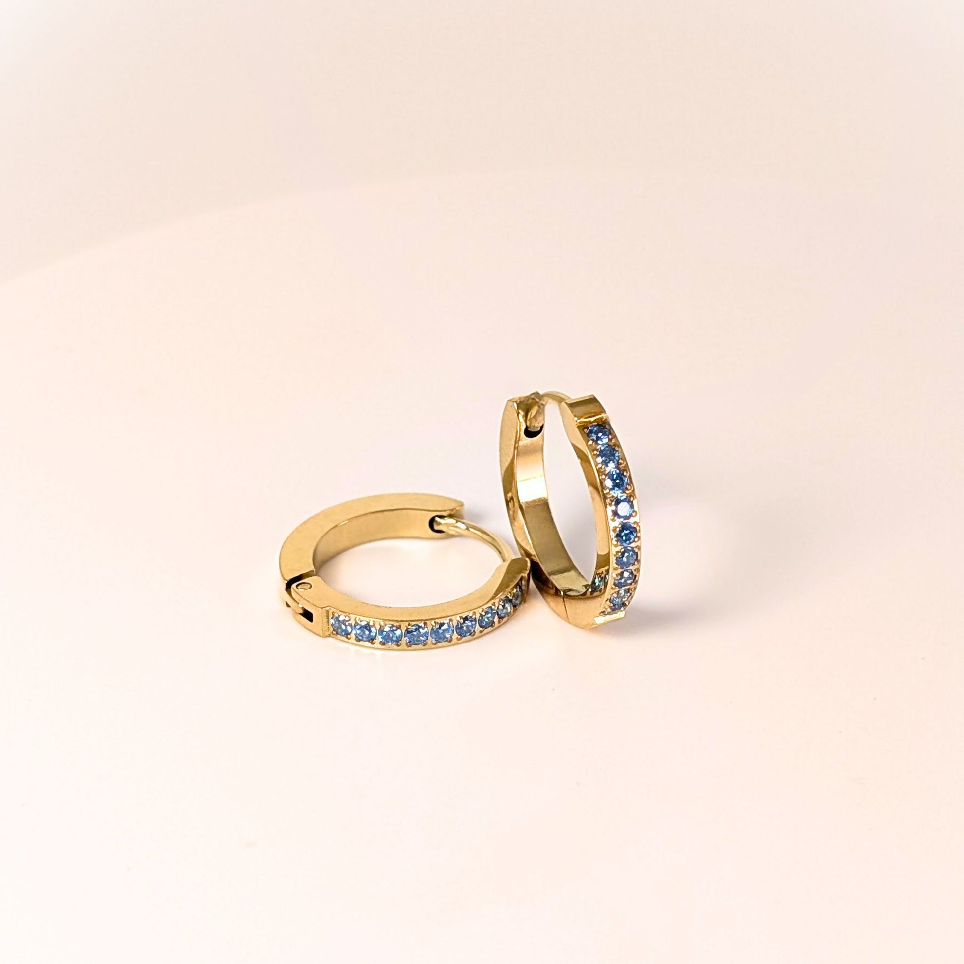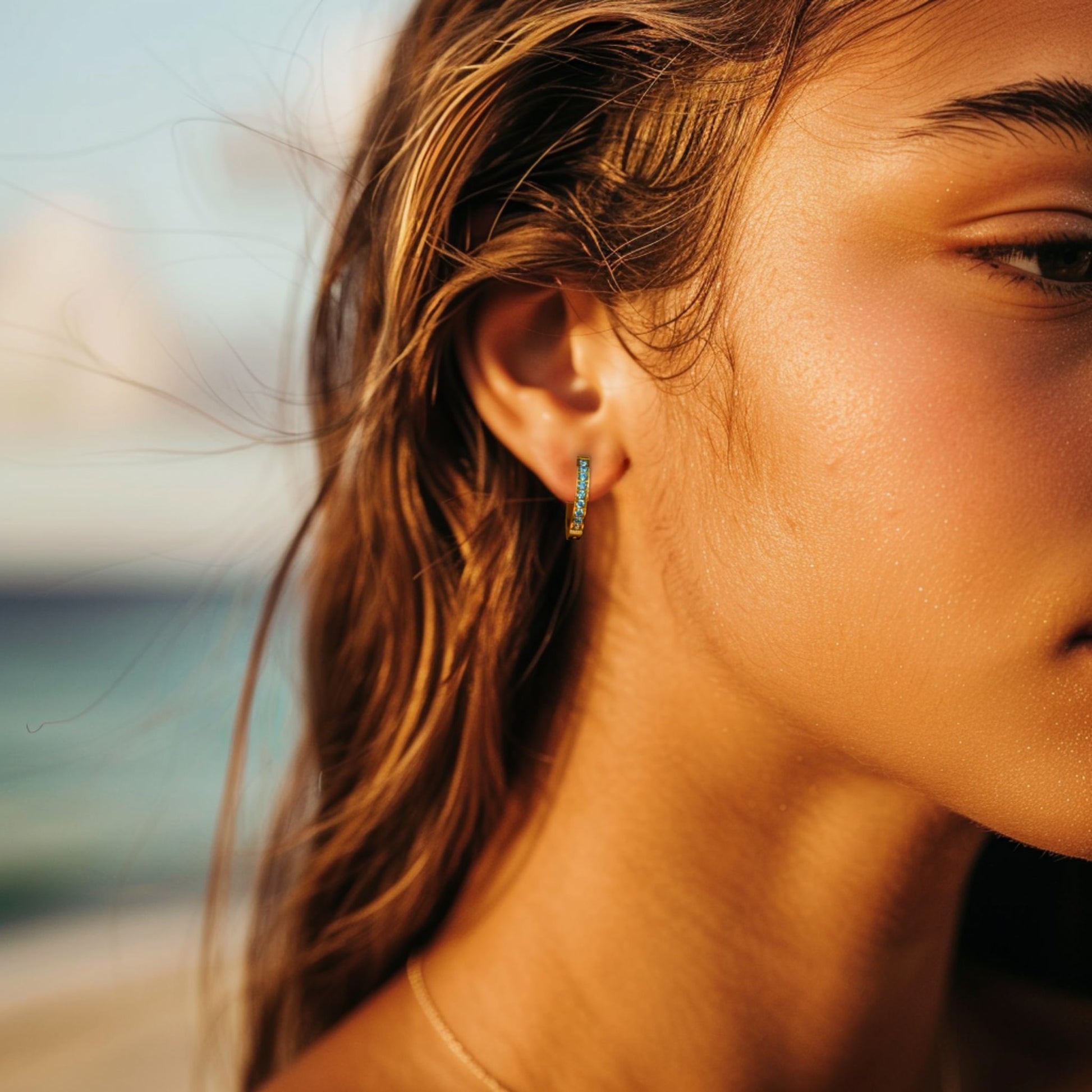 Les boucles Azura séduisent par leur élégance intemporelle et leurs zircons bleu azur qui rappellent les eaux cristallines. Leur format compact et leur finition dorée raffinée en font un choix parfait pour illuminer vos journées comme vos soirées.