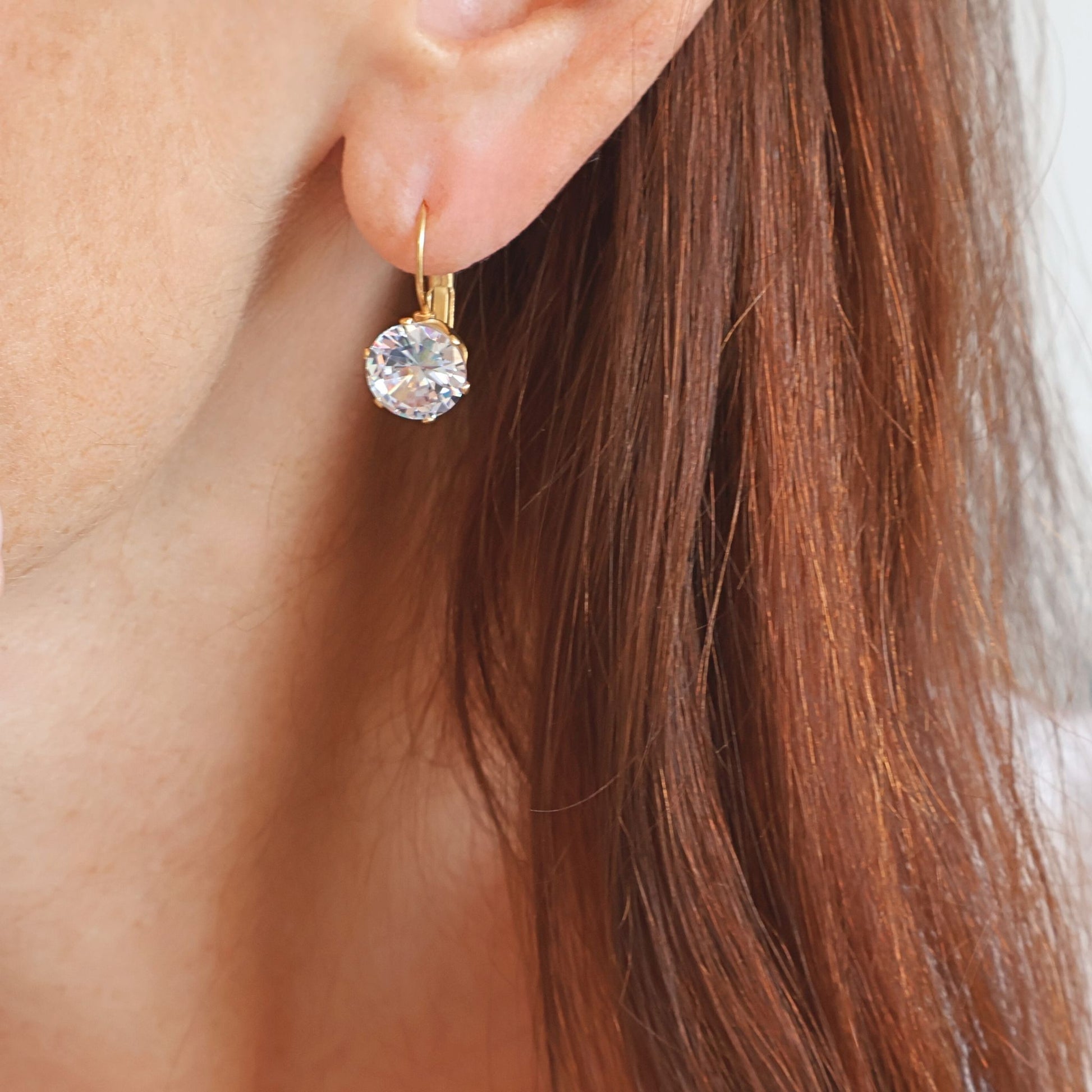 Les boucles d’oreilles Lumina captent tous les regards avec leur zircon central étincelant monté sur une boucle pendante dorée. Élégantes et raffinées, elles ajoutent une touche de lumière à vos tenues, de jour comme de nuit.