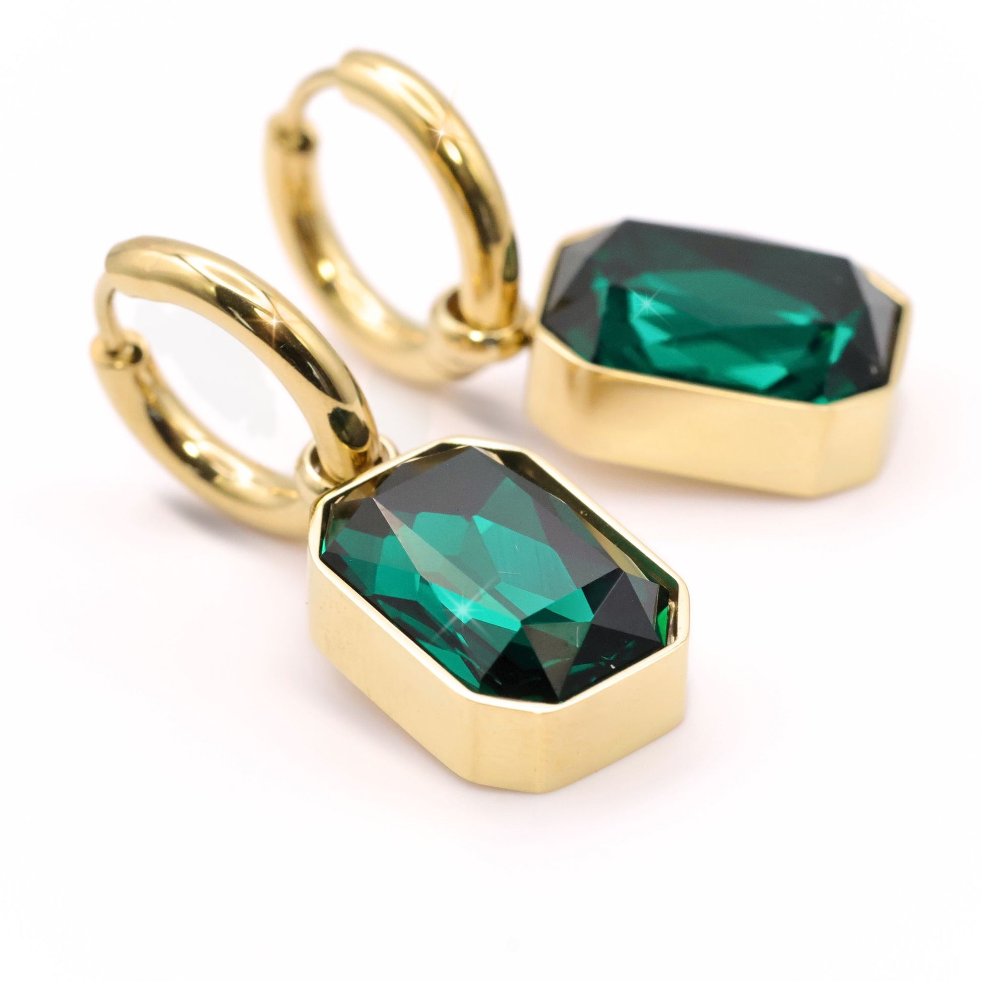 Les boucles d’oreilles Esmera captivent par leur éclat profond et leur design sophistiqué.