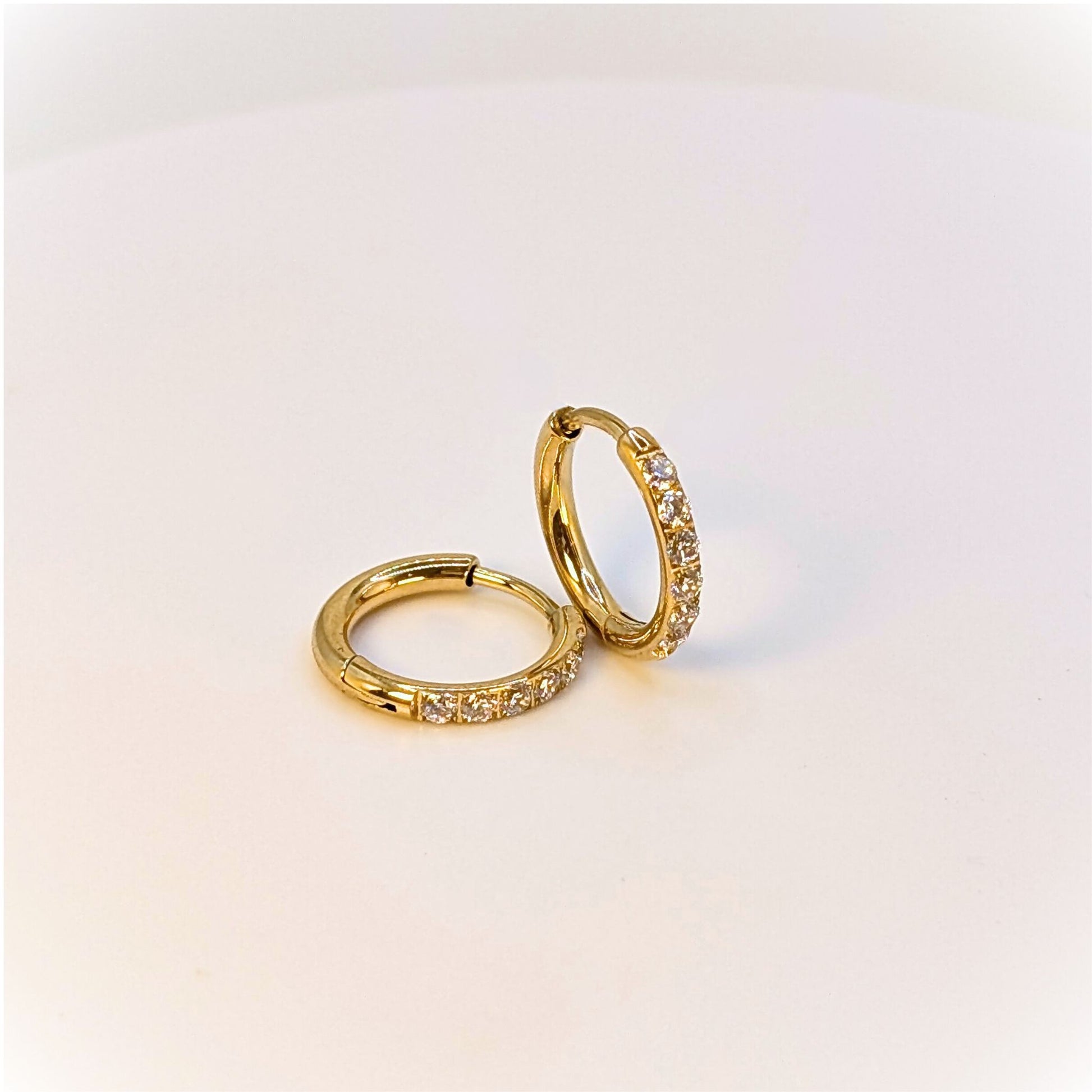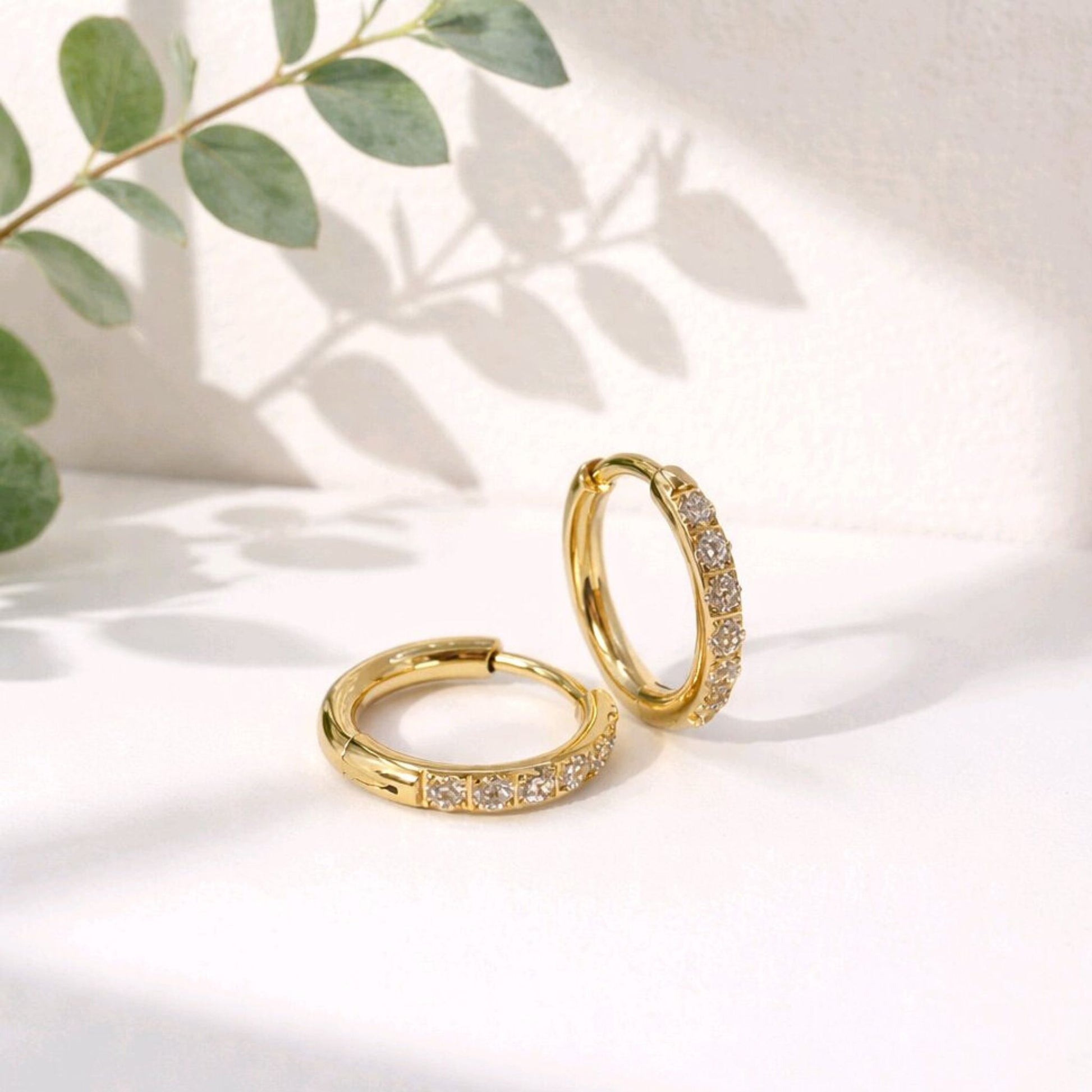 Ces petites boucles d’oreilles dorées sont discrètes, mais pleines d’éclat grâce à leurs 6 zircons finement incrustés. Parfaites pour ajouter une touche de brillance à ton quotidien, seules ou en superposition avec d’autres bijoux Solexya.