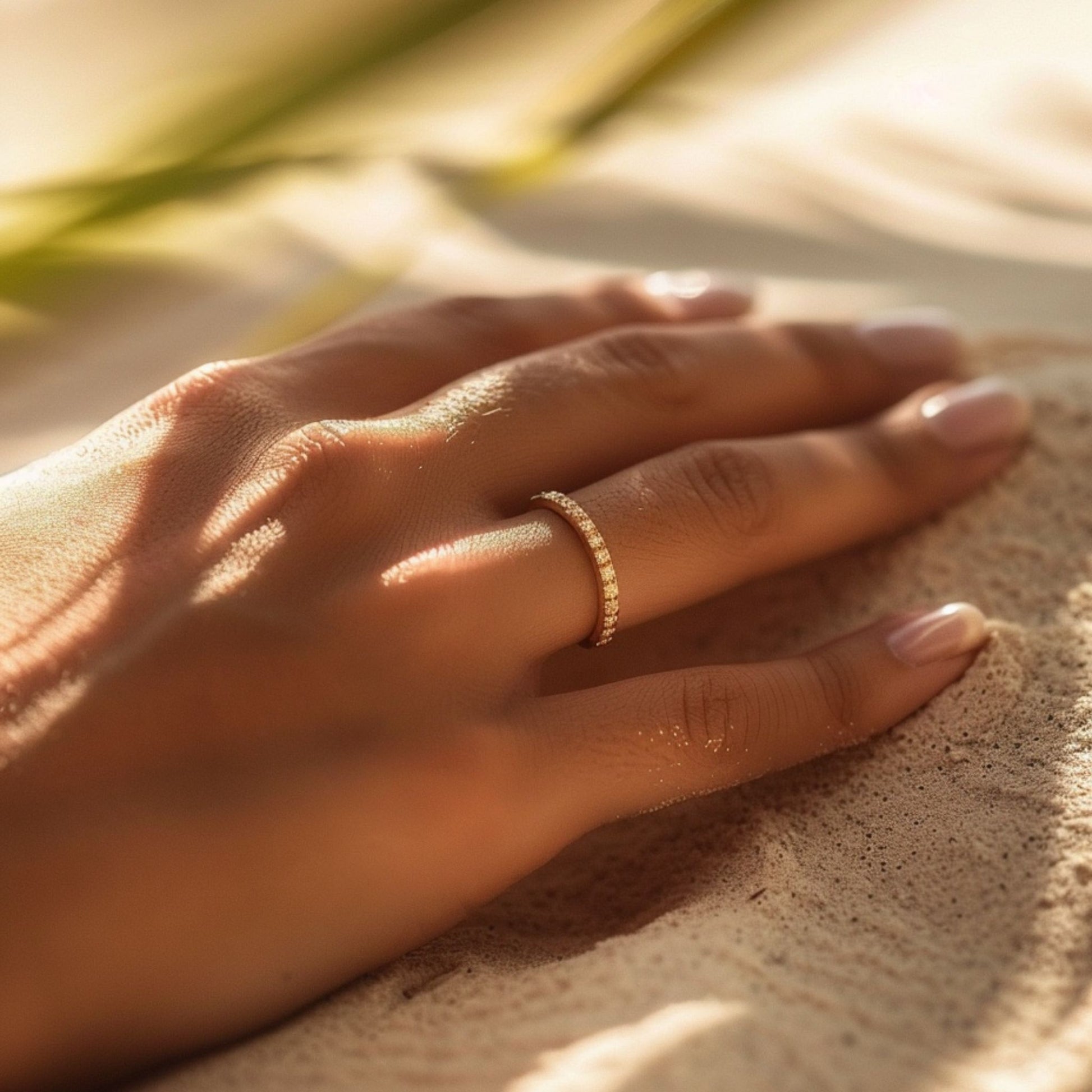 La bague Stella scintille avec une élégance discrète grâce à son anneau entièrement serti de zircon. Raffinée et intemporelle, elle peut être portée seule ou en accumulation pour un effet encore plus éclatant.